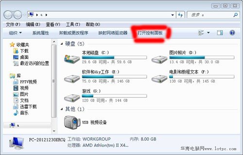 首先點擊Windows7桌面上的“計算機”,接著點擊“打開控制面板”。
