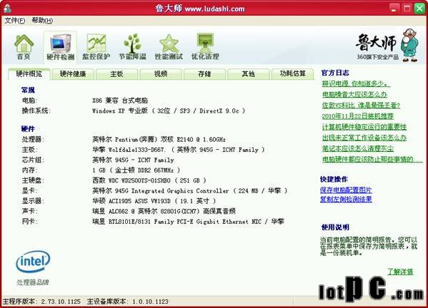 魯大師硬件檢測軟件界面(點擊下載地址)