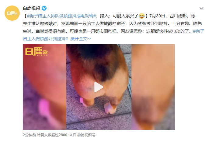 狗子陪主人排隊做核酸抖成電動臀