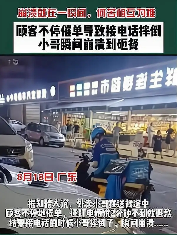 外賣小哥接催單電話不慎摔倒崩潰