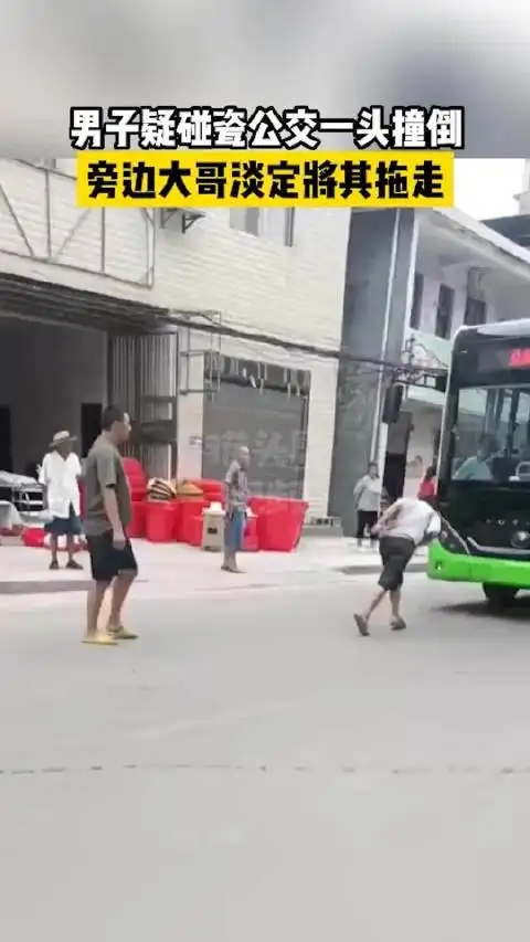 男子疑碰瓷公交被路人淡定拖走 輕