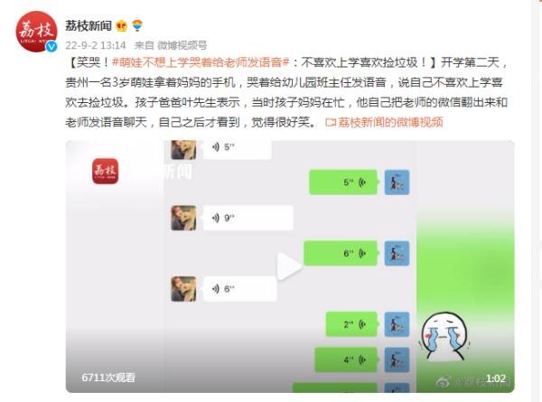 開學第二天,萌娃給老師發語音:不想上