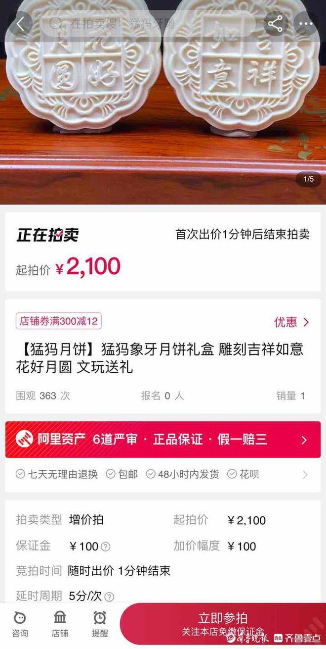 兩枚猛犸象牙月餅被拍賣 起拍價(jià)為5