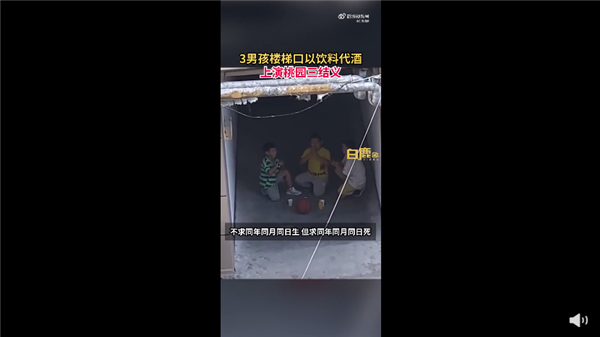 三男孩跪樓道里飲料代酒“桃園三結(jié)
