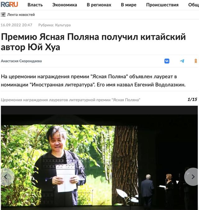 余華憑借《兄弟》獲俄最佳外語作品
