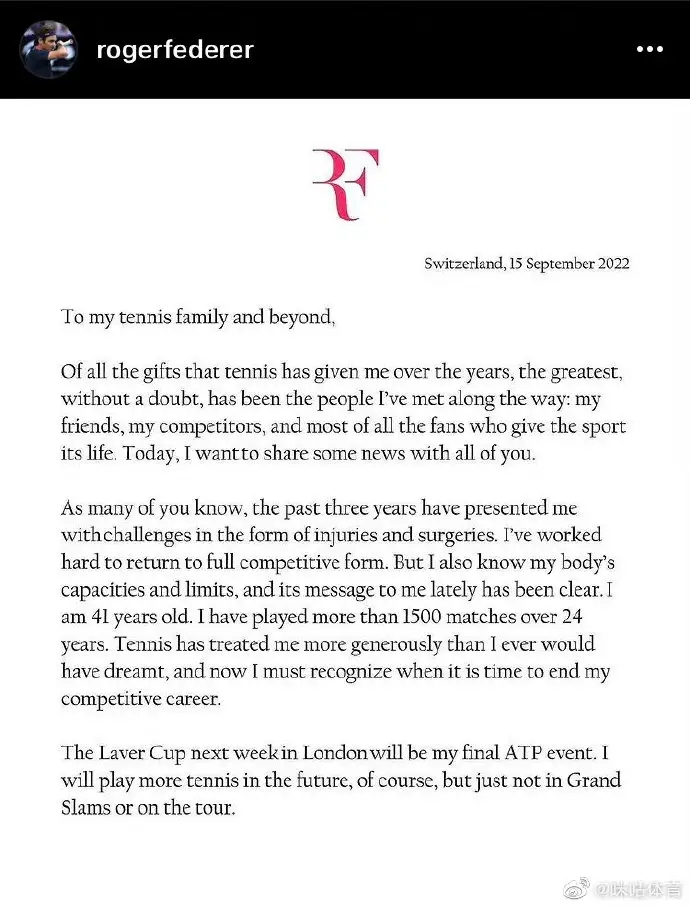傳奇謝幕!41歲網球傳奇羅杰-費德勒