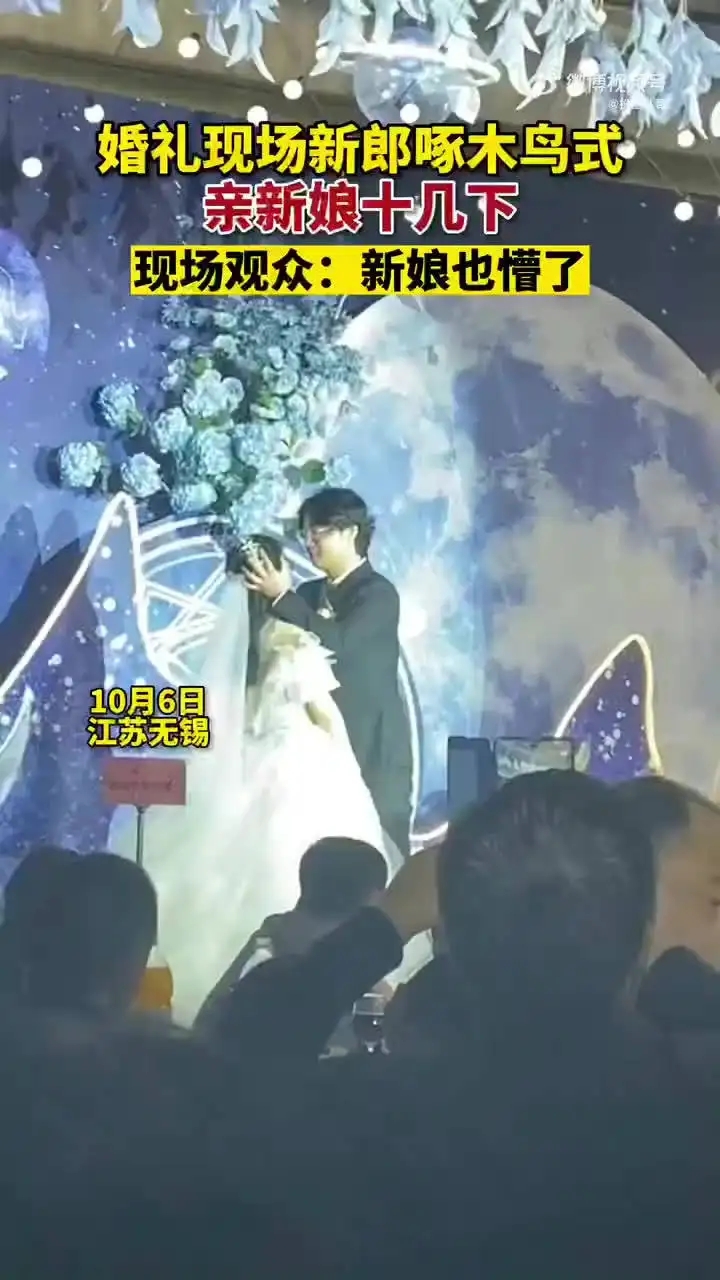 婚禮上新郎啄木鳥式親新娘 連親新
