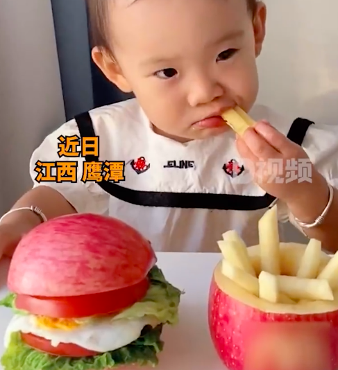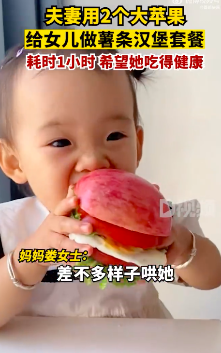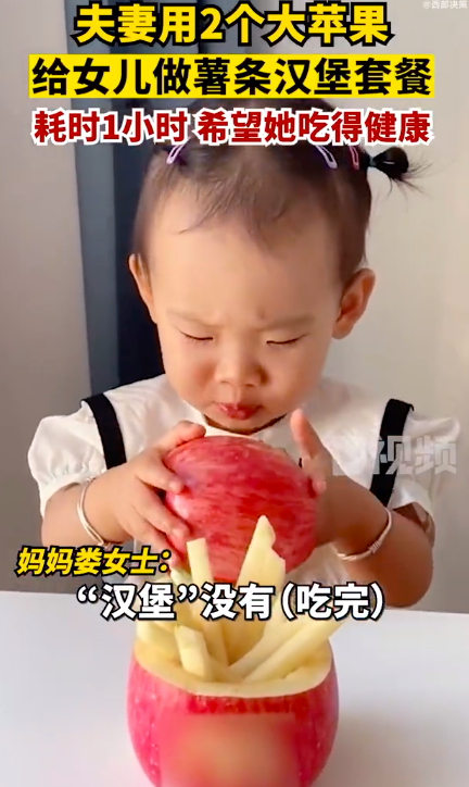 夫妻用蘋果給女兒做薯條漢堡套餐