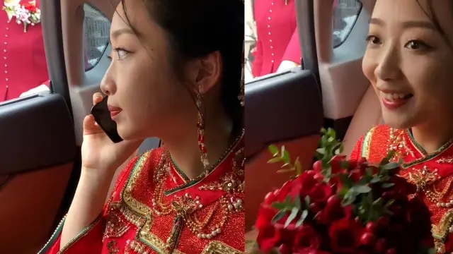 新娘坐婚車內臨出發時仍在談生意
