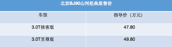 北京BJ90山河經(jīng)典版正式上市 售價4