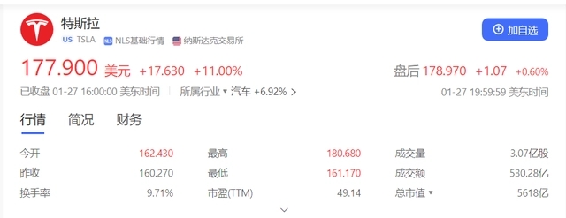 特斯拉市值一夜暴漲3800億 網(wǎng)友:股