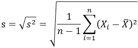 樣本方差的開方稱為樣本標準差,記為s,其計算公式如下: