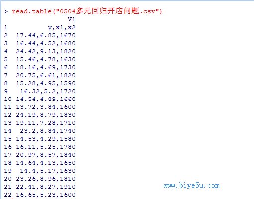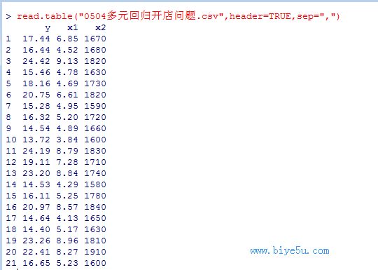 (5)read.table("0504多元回歸開店問題.csv",header=TRUE,sep=",")
