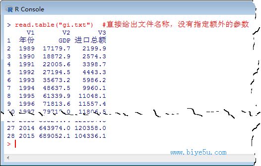 (1)read.table("gi.txt") #直接給出文件名稱,沒有指定額外的參數