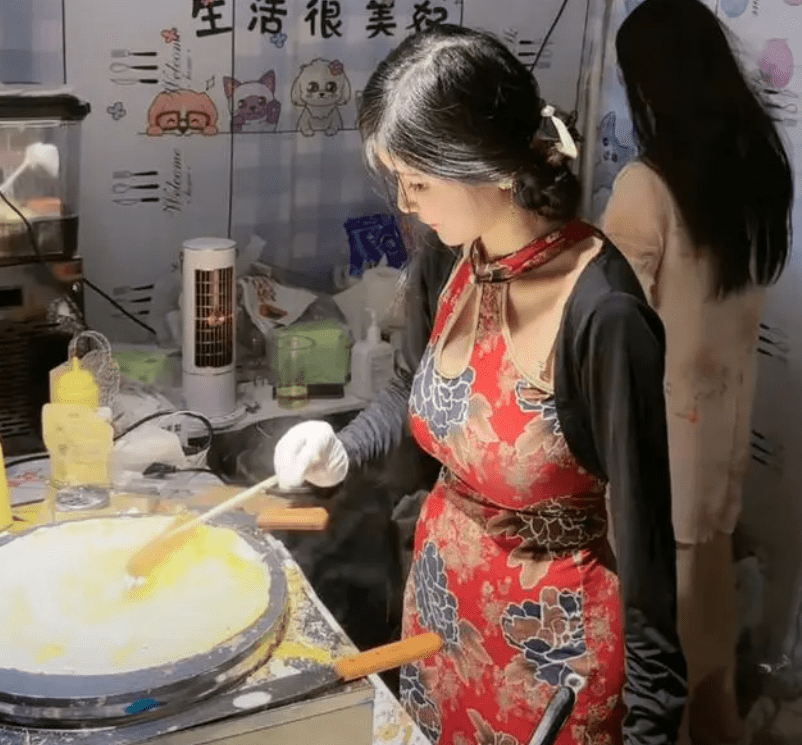 “狗頭蘿莉”穿旗袍賣煎餅:你就說好