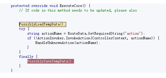 在執(zhí)行Action之前,會執(zhí)行PossiblyLoadTempData();