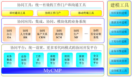 實現協同工具、協同應用、協同平臺的三統一,并提供強大的建模工具。