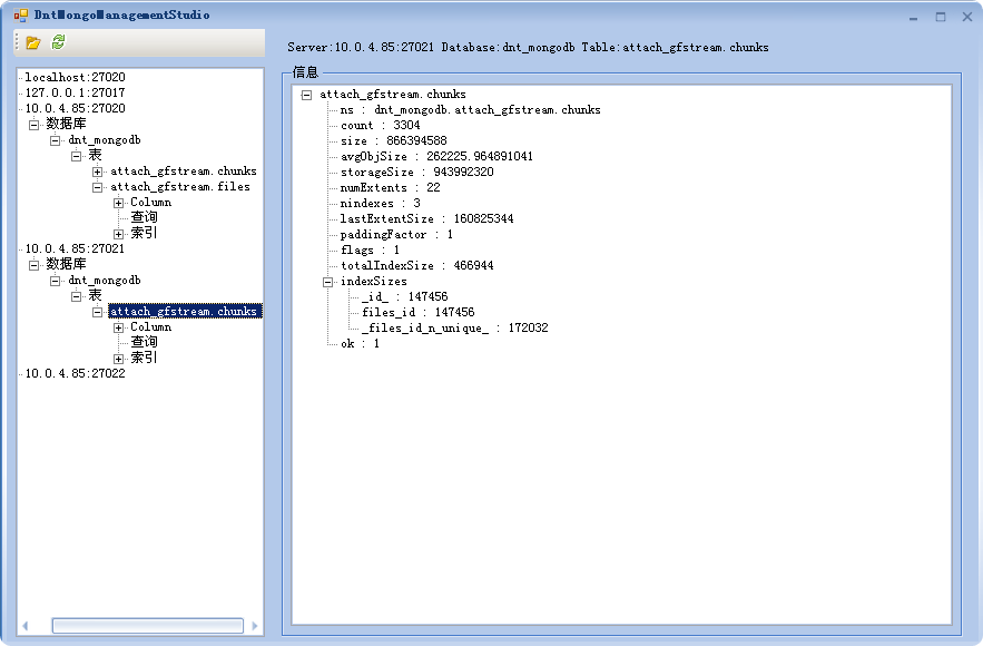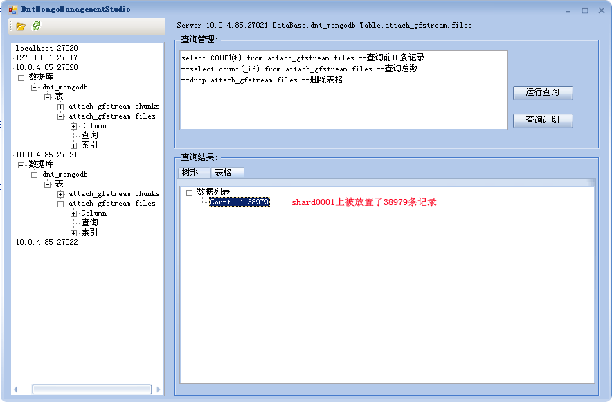 模擬2個shard服務和一個config服務, 均運行在10.0.4.85機器上,只是端口不同: