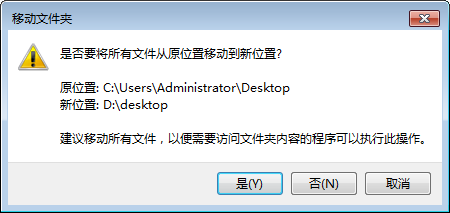 (8)在上圖中點擊“是”,稍等片刻,則完成桌面文件的移動處理,然后在圖4所示的界面中點擊“確定”,則完成操作。