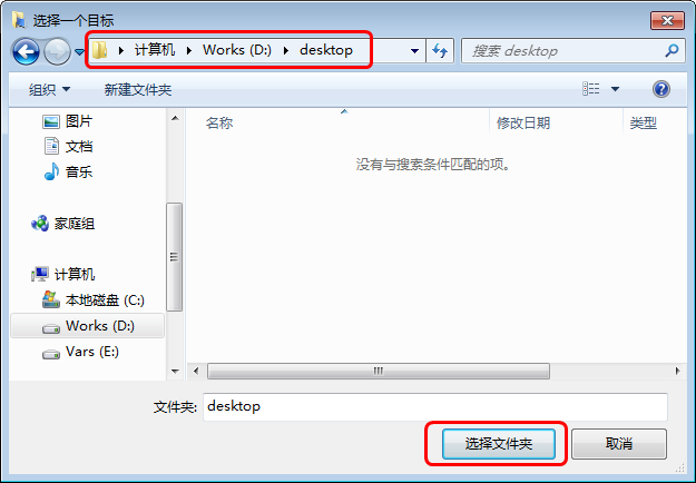 如在D盤根目錄下建立一個名為“Desktop”的文件夾,然后選擇該文件夾作為移動的目的文件夾。