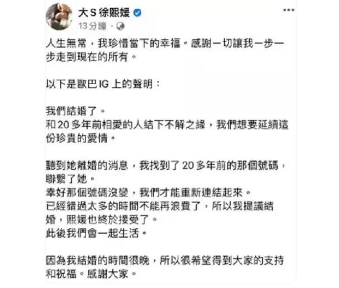 大S回應(yīng)小S復(fù)出演戲 大S與具俊曄什