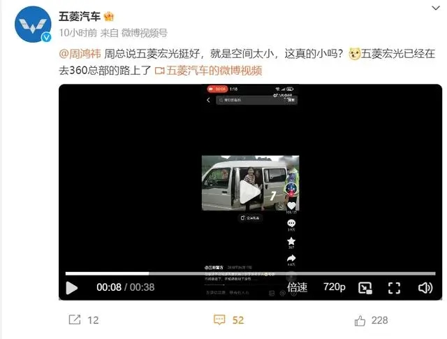 五菱宏光回應(yīng)被周鴻祎說空間小:已經(jīng)