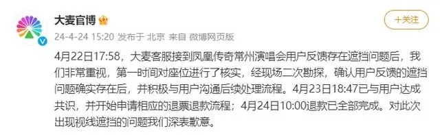鳳凰傳奇演唱會座位遮擋 大麥回應: