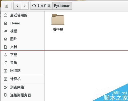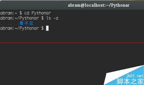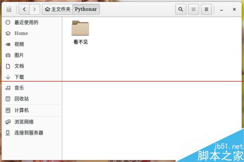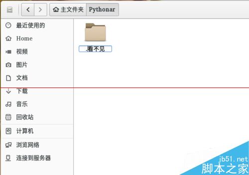1、首先展示如何隱藏文件夾。(文件和文件夾的操作方法完全一致,后面就略掉了。)假如在你的Home目錄下有個Pythonar目錄,里面有個文件夾叫“看不見”。