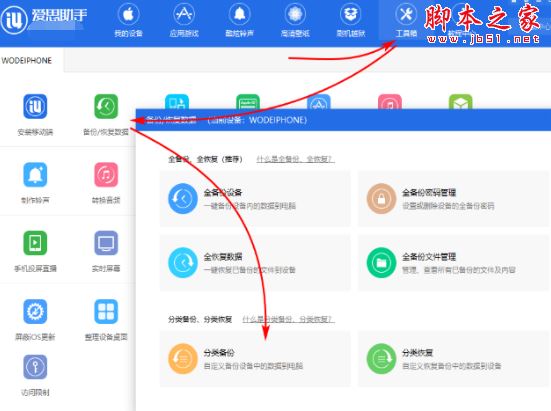 大家一定要養成定期備份的好習慣。打開愛思助手,在“工具箱”頁面找到“備份/恢復數據”,選擇“分類備份”中的“通訊錄”,就能將手機通訊錄保存在電腦上。