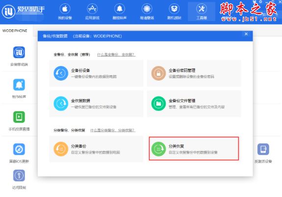 如果iPhone通訊錄出現了異常,在同一頁面選擇“分類恢復”,并選擇已備份的文件,就能進行恢復。