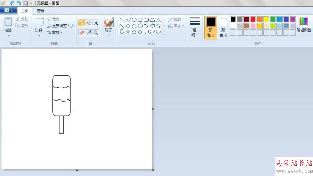 4、冰棒造型:點擊“鉛筆”按鈕,在畫好的冰棒上畫兩條彎彎曲曲的線條。