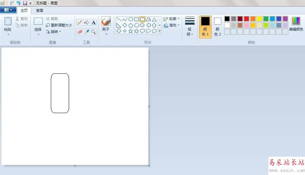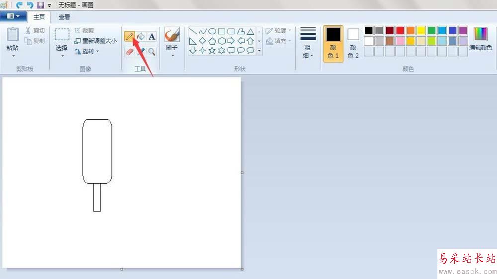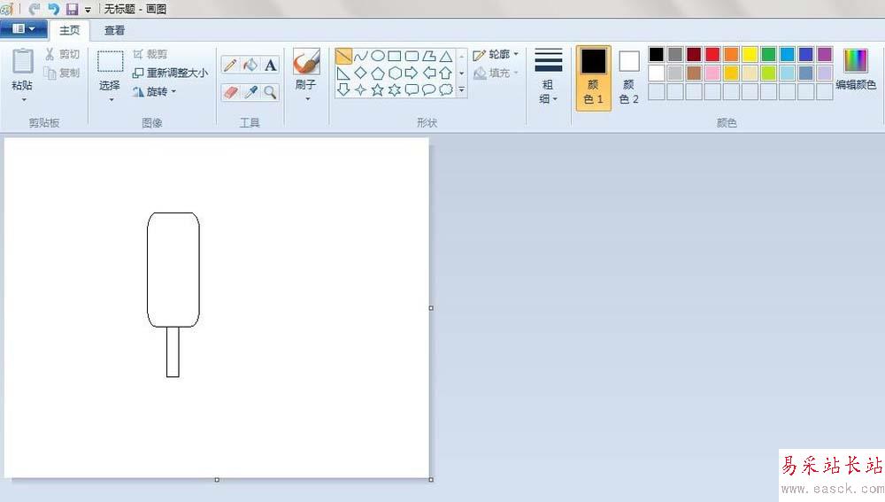 2、冰棒輪廓:點擊“圓角矩形”按鈕,線條粗細(第一個),先在“畫紙”適當位置上畫上一個長形的圓角矩形。