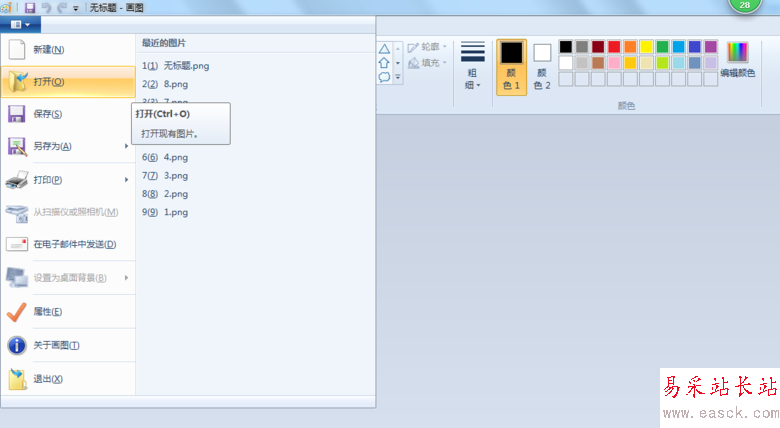 2、點(diǎn)擊菜單欄最左邊的按鈕傍邊的箭頭,或者可以按“Ctrl + O”快捷鍵,調(diào)出打開對(duì)話框。