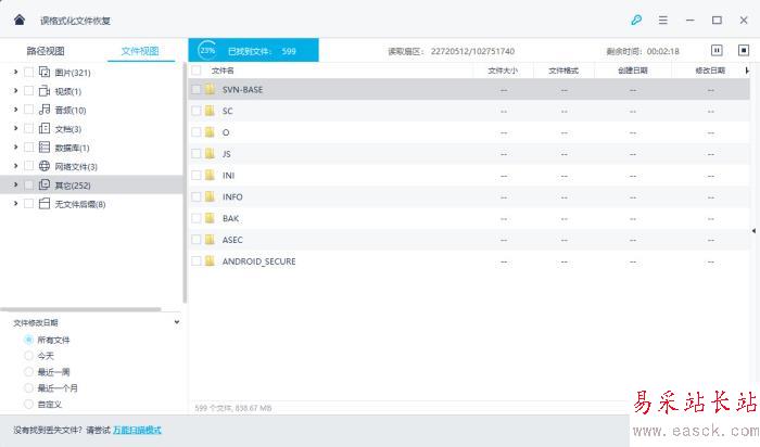接著,你丟失的文件基本都會被快速掃描出來,就一會會的事。當然,有可能你還是找不到想要的文件,那么試試“萬能掃描模式”吧,不會讓你失望的。