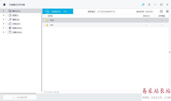 “萬能掃描模式”將會深入搜索硬盤中更多文件,不過這時候就要耐心點了,它的掃描過程會有點久呢。
