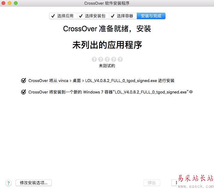 1、下載好英雄聯(lián)盟的安裝包,打開已經(jīng)安裝好的CrossOver,沒有安裝的小伙伴們可以進行下載安裝,還可以參考安裝教程:如何在Mac上安裝CrossOver。點擊“安裝Windows應用程序”;
