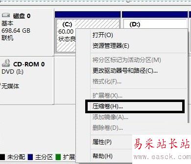 Ps.一般選擇系統(tǒng)C盤選擇“壓縮卷”。