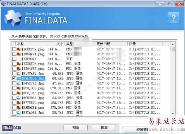 5、掃描完成,可以看到刪除的文件,選擇你要恢復的文件,點擊“恢復”