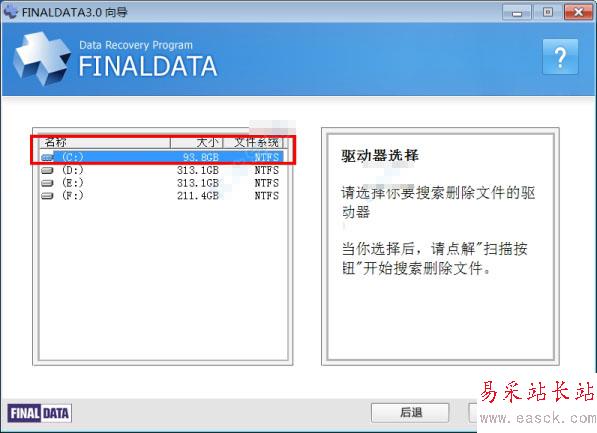 請選擇你要搜索刪除文件的驅動器