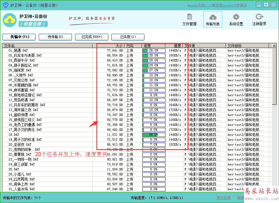 (2)傳輸最大并發(fā)數(shù):可以同時(shí)傳輸?shù)奈募€(gè)數(shù),最大傳輸速度,為了節(jié)省系統(tǒng)資源,限制在20以內(nèi)。