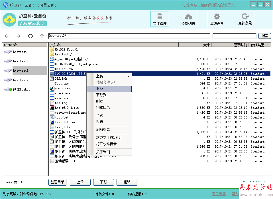 登錄成功之后,選擇左側(cè)的Bucket列表,在右側(cè)窗口中可以看到當(dāng)前Bucket中的文件,在文件上點(diǎn)擊鼠標(biāo)右鍵,可以有更多的操作,具體可以參見(jiàn)上圖。