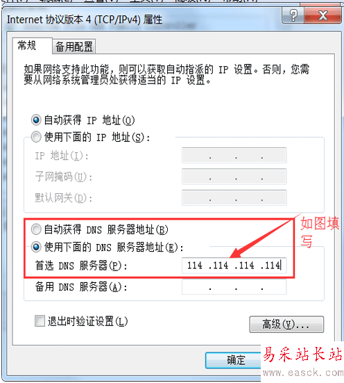 4、最后你如圖設置DNS地址:114.114.114.114,點擊確定即可。