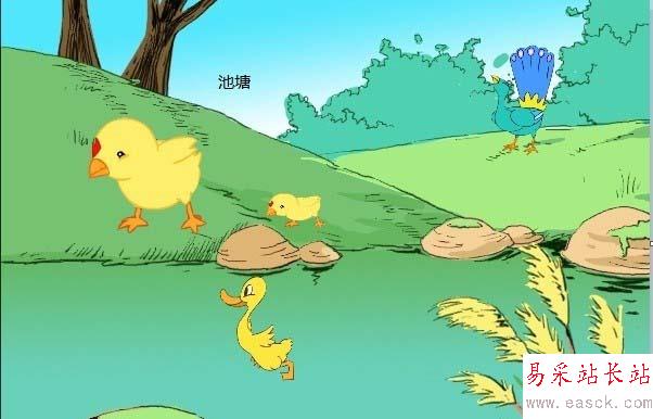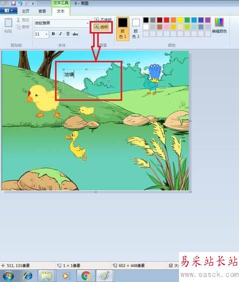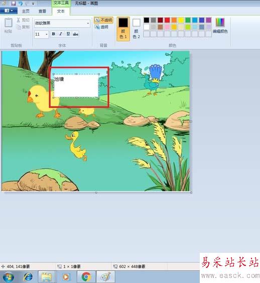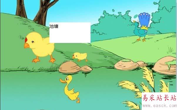 5、發現輸入的文字池塘將下面的畫遮住了,很不協調。