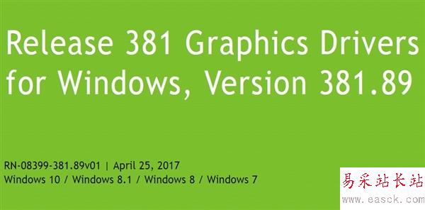 NVIDIA最新發布了版本號為381.89的顯卡驅動程序,加入了多款游戲大作優化,并提升了系統穩定性。