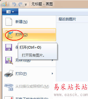 2、點(diǎn)擊“畫圖”工具左上角的倒三角-點(diǎn)擊“打開(kāi)”。