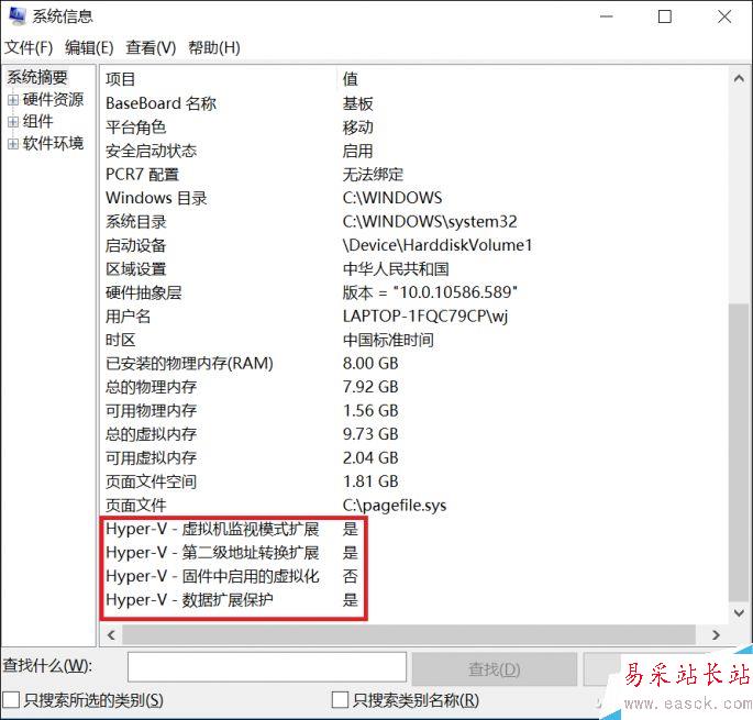 使用Windows系統自帶的虛擬機Hpyer-V,有兩個前提條件:一是上面所說的系統版本要求,另外就是電腦處理器對虛擬化的支持。想要知道也非常簡單,Win+R啟動“運行”之后輸入“msinfo32”,往下拉動頁面就能看到。
