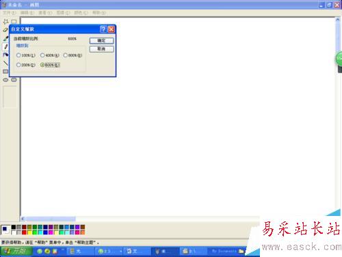 3、選擇“600%”(你也可以選擇其他百分?jǐn)?shù),但要注意,百分?jǐn)?shù)的大小決定像素點的大小),點擊“確定”。