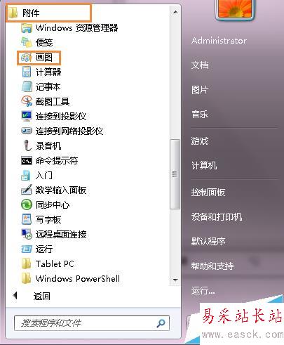 2、我們先打開開啟欄里的附件下面后畫圖軟件。