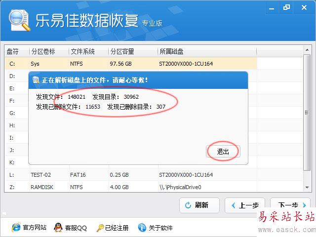 4、數據恢復軟件彈出快速解析分區文件的信息框。