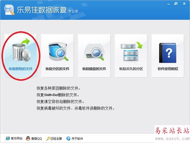 點擊主界面上的"恢復刪除的文件"功能按鈕。